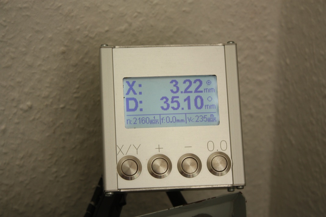 Jeder der schon mal an einer Drehbank gearbeitet hat, kennt das Problem; Man verzählt sich bei der Anzahl der Umdrehungen am Handrad oder vertraut den Skalenringen aufgrund des Umkehrspiels der Spindeln nicht so hundertprozentig und man muss den Drehvorgang häufig unterbrechen, da man sich nicht mehr sicher mit der Maßhaltigkeit des Werkstücks ist, um nachzumessen.